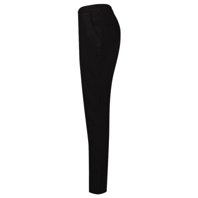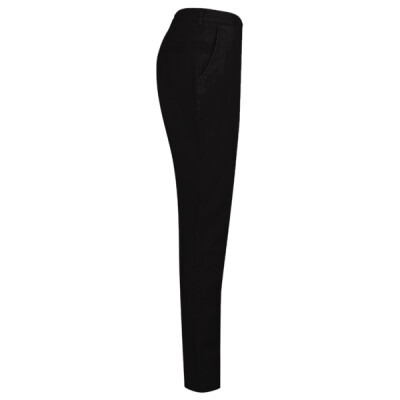 Women's slim fitting chino with added stretch for comfort and ease of movement. Includes YKK front zipper, belt loops, slanted side pockets, two single jet back pockets, back darts for added fit and DTM buttons.