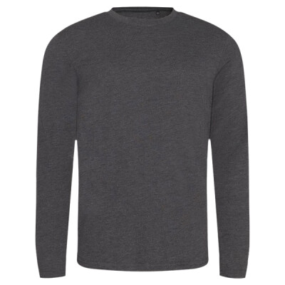 Modern fit long sleeved T. Size tab label. Triblend fabric for style and comfort. Taped neck. Twin-needle stitching on sleeves and bottom hem. Ribbed crew neck style. soft-feel fabric. Side seams. Set-in sleeves.