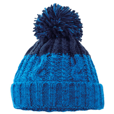 TearAway label for ease of rebranding. Heavyweight multi-yarn cable knit design. Bold two colour design. Luxury pom pom. Luxurious Shearling thermal band for extra warmth. Cuffed design for optimal decoration.