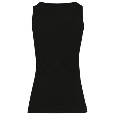 Tank top, sleeveless, low round neck, cuffs at hem, neckline and armholes.