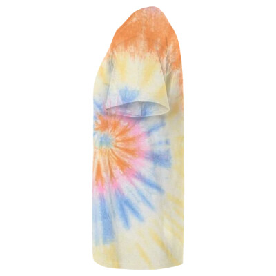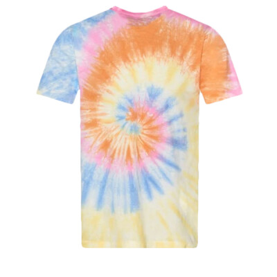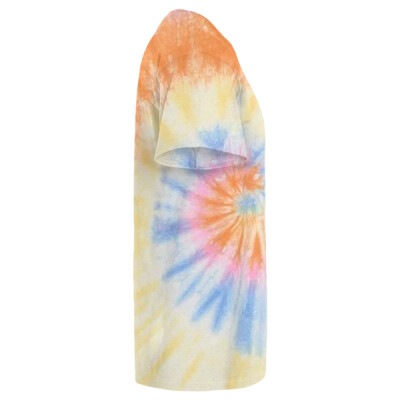Modern fit with side seams. Short sleeves. Tie-dye design. Every piece is unique. Size label only, for easy rebranding – colour-coded black for unisex. Combed ringspun cotton for ultra comfort. Surface excellent for print or embroidery. Taped neck. Ribbed crew neck style. Twin-needle stitching detail on sleeve and bottom hem.
