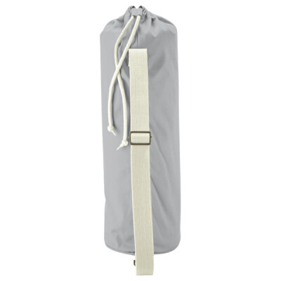 Contains 100% certified organic cotton. Premium, heavyweight fabric. Concealed, zipped valuables pocket. Rope drawcord closure. Adjustable webbing shoulder strap. Fits most yoga mat sizes.