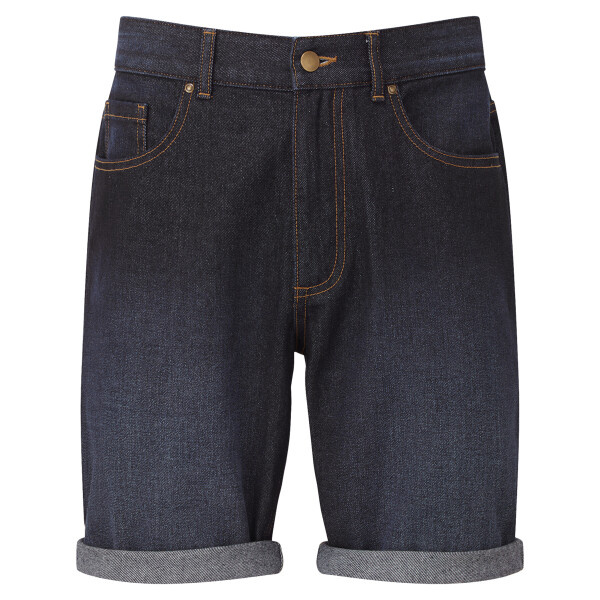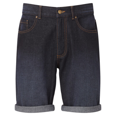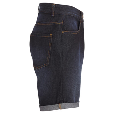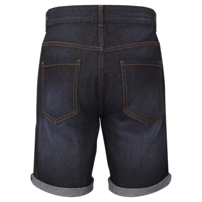Two front pockets with coin pocket. Brass button and cap detailing. Two back patch pockets. Zip fly and button fastening. Washed denim effect. Contrast stitching. Belt loops. Shorts can be worn rolled up.