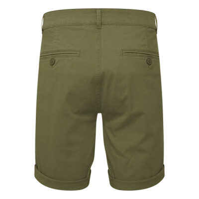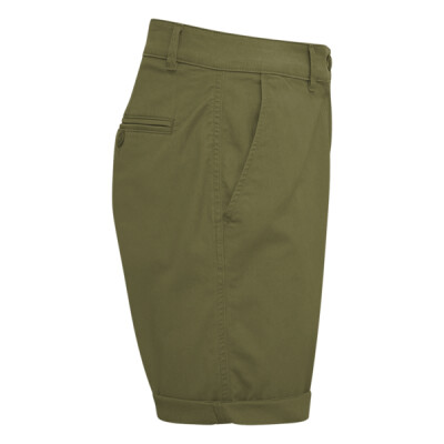 Men’s chino shorts with two swing pockets and two back jet pockets. Zip fly and button fastening to the front. Soft-finish lightweight fabric. Belt loops. Style can be worn rolled up. Product contains no branded neck label. Removable Kimble or looped garment tags. Inner seam label holds important product information on one label with a second label containing brand information which can be cut-away. Please note old stock may contain a fixed branded label.