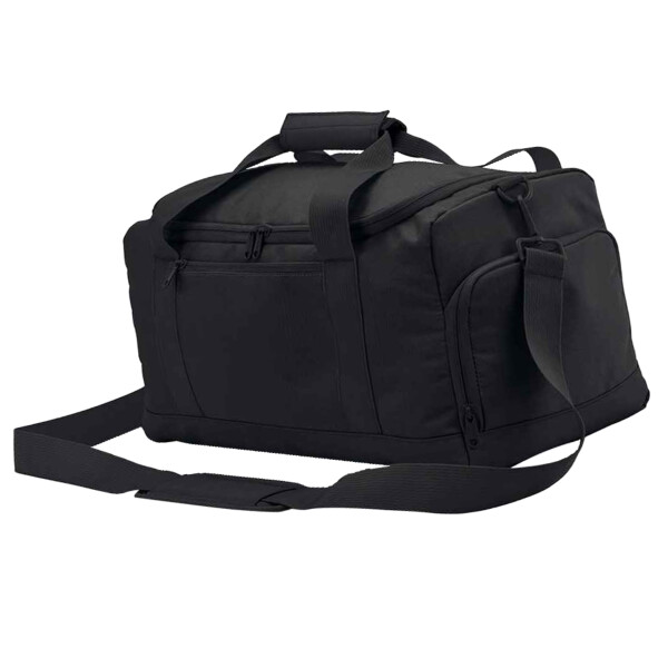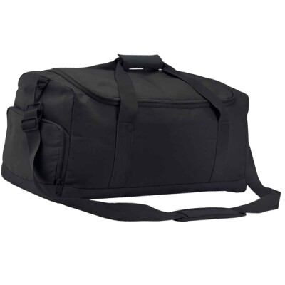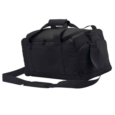 Contains 100% certified recycled polyester. PU coated base panel. Two-way zipped opening for easy access. Shoe tunnel. Zipped front pocket. External mesh pocket. Internal mesh pocket. Padded hand grip. Detachable, adjustable shoulder strap. TearAway label for ease of rebranding.