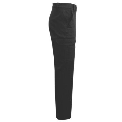 Durable work cargo trousers with Premier's Stretchchecker fabric for stretch and a comfortable fit. Belt loops and two-button fastening to the waistband. Covered YKK zip fly. Side sling pockets. Multiple mobile friendly, cargo-style pockets with hook and loop fastening. Single patch pocket to the reverse. Two leg lengths. Unisex styling. Contains certified recycled polyester.