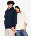 100% organic combed cotton. Brushed back fleece. Enzyme washed. Drop shoulder style. Oversized fit. Herringbone taped neck. Half moon back yoke. Tubular body. Two front pockets. 2x1 ribbed cuffs and hem. Twin needle stitching. Tag free.