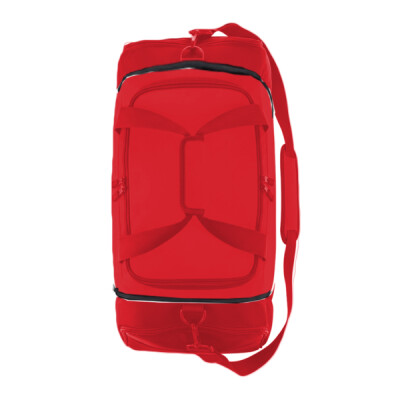Compact size to fit most lockers, with detachable adjustable shoulder strap and pad. End pockets, one with mesh ventilation panel and protective base feet.
