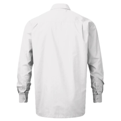 Fused collar. Stand up collar. Single needle stitched armholes. Twin needle stitched sleeve and side seams. Back yoke. Rounded hem. Two back darts. Spare button. Woven Kustom Kit® label. Easy-iron.