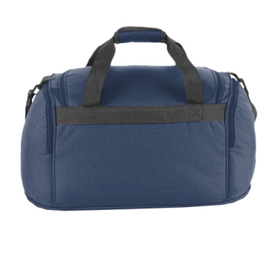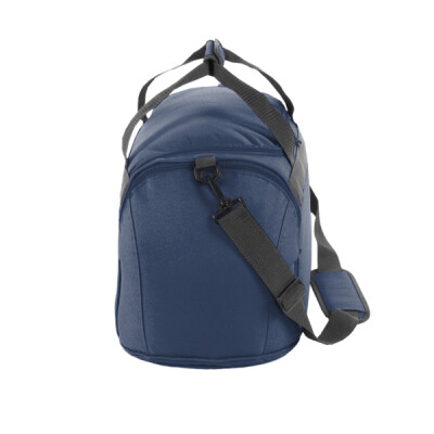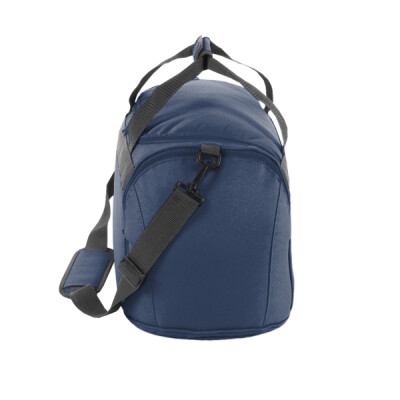 Detachable adjustable webbing shoulder strap with pad. Zippered end pockets.