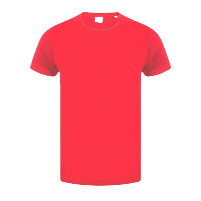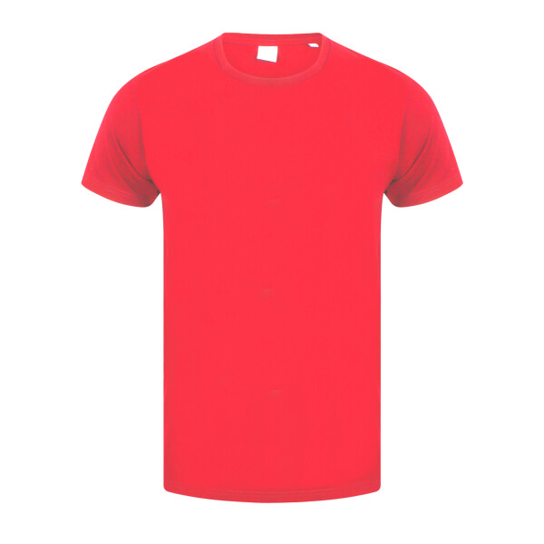 Feel good men's stretch t-shirt with enzyme wash for unique soft hand-feel. 96% cotton, 4% elastane for improved fit, comfort and shape retention. Modern long-line fit. Crew-neck with back neck binding and soft stretchy rib neckline. Features new tearable removable label.