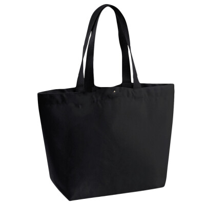 Premium heavyweight fabric. Natural wooden toggle closure. Cotton webbing carry handles. Can be carried by hand or over the shoulder. Handle length: 60cm. 100% Certified organic cotton.